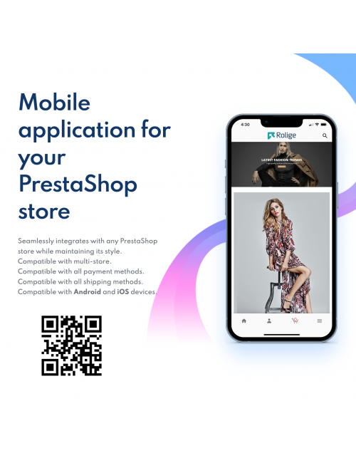 Aplicación móvil premium para tu tienda PrestaShop compatible con Android y iOS. Se integra a la perfección con cualquier tienda manteniendo el diseño actual del sitio y usando los mismos métodos de pago y envío ya configurados. Compatible con dispositivos Android y iOS.