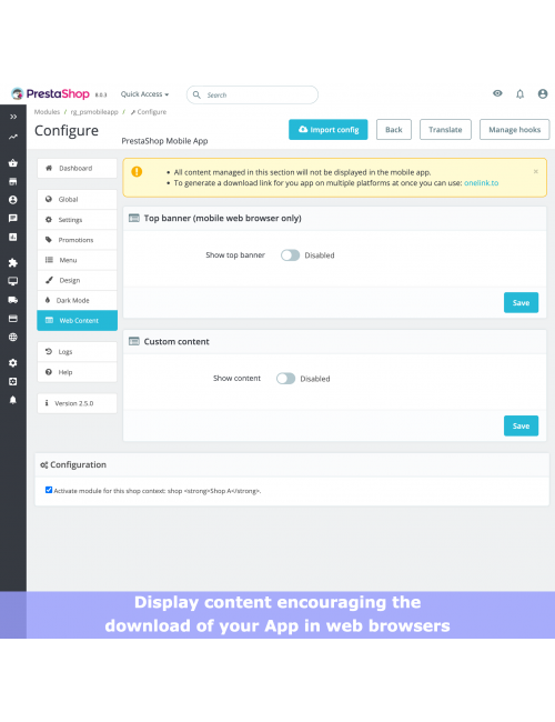 [+] Opción de crear un banner superior en el navegador del móvil para invitar a la descarga de la App